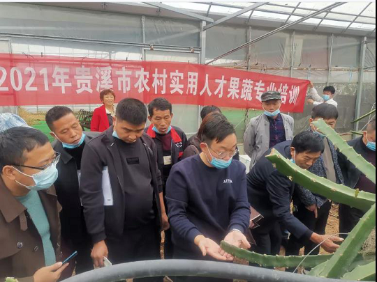 近日,江西省贵溪市农村实用人才果蔬专业培训班开课,句容市“创业之星”胡杰、范亚君、严苏峰应邀赴江西作了《火龙果冬季管理及越冬方案》、《草莓全程绿色防控技术》以及《作物水肥管理基础课程》的授课和现场教学。