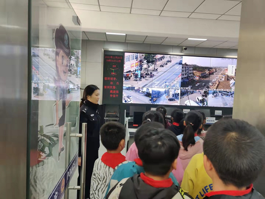 派出所民警带领孩子们参观了值班室、综合户籍服务大厅,了解了派出所工作职能,观看了视频监控系统。当他们看到身旁负责“110”接警热线的值班民警忙碌的身影时,向民警致敬之情油然而生。(下蜀镇 关工委)