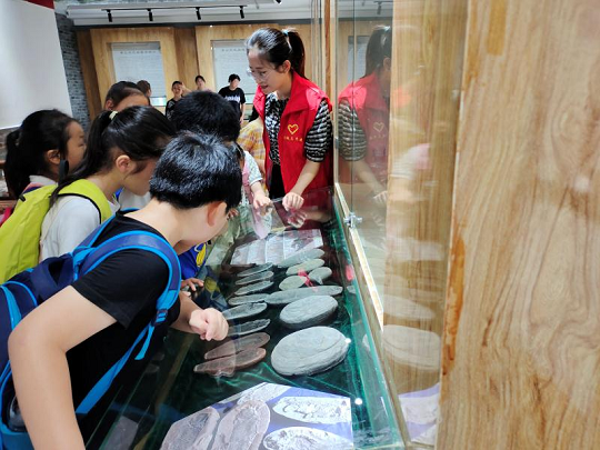 聆听着讲解员的讲解,孩子们叹为观止:村史馆内2.4亿年的鱼化石,宰相巫朝润的故事,封皮斑驳的家谱,锈迹斑斑的农具··,一件件物品,一帧帧图片,深深吸引着孩子们好奇的眼球。他们围着讲解员问这问那,当疑问被一一解答时,眉宇舒展,笑脸如花,喜悦写满了脸盘。