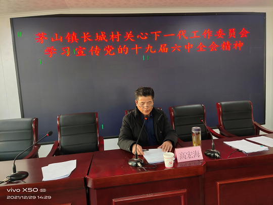 接下来,会议由村党总支副书记高宏海同志为大家作学习党的十九届六中全会精神辅导报告。他说,十九届六中全会是在中国共产党成立100周年的重要时刻,在“两个一百年”奋斗目标交汇的历史关头召开的一次十分重要的会议。我们要从党的百年奋斗重大成就和历史经验中汲取智慧力量,更加坚定为党育人,为国育才的责任感。