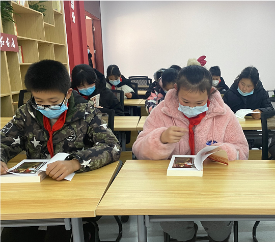 在红书房里,孩子们认真地阅读革命故事书籍,通过读书这一载体,让孩子们多了解中国革命、建设、改革的历史知识,向先辈和英雄模范学习,传承革命精神。希望他们怀着一颗感恩的心,珍惜时光,努力学习,将来做对国家、对人民、对社会有用的人。(王雯)
