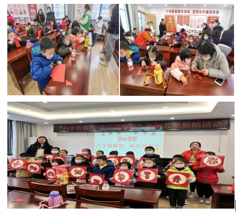 活动中,新时代文明实践的志愿者向小朋友们讲述了剪纸艺术的精妙技艺。志愿者耐心讲解和分步演示,为孩子们示范了一些“剪纸”中需要注意的步骤和技巧,并手把手教导剪纸的要领。有的剪出春、福等字样;有的剪出生肖、锦鲤;还有的剪出财神、元宝等……一个个创意纷呈的窗花在孩子们灵巧的小手下出现,大家都踊跃展示着自己的作品,每个人的脸上都洋溢着幸福的笑容。