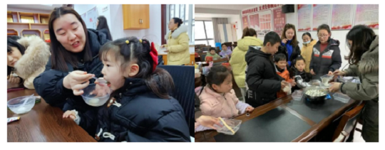 正月十五吃元宵由来已久。元宵即"汤圆",以白糖、玫瑰、芝麻、豆沙、黄桂、核桃仁、果仁、枣泥等为馅,用糯米粉包成圆形,可荤可素,风味各异。可汤煮、油炸、蒸食,有团圆美满之意,圆圆的汤圆里蕴藏着浓浓的节日喜乐气氛。活动现场,社区工作人员带领孩子们一起动手做元宵、煮元宵、品尝元宵。拌馅料、和糯米粉,包元宵,忙的不可开交,一个个元宵在小朋友们的手中诞生。随后,社区工作人员将煮熟的元宵端了上来,孩子们吃着元宵,暖洋洋的表情洋溢在每个人的脸上。