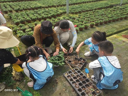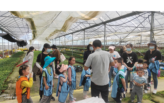 到达花卉种植园,孩子们一入园,映入眼帘的是琳琅满目的植物,各种争奇斗艳的花朵竞相开放。辅导员领着孩子们来到种植大棚,一片片绿色的绿植田和一排排绿植面再次引起了大家的赞叹,花木基地的工作人员在现场为孩子们做了劳动技能示范,讲解了相关植物知识。“你们看,这是薄荷,为唇形科的一属,薄荷适应性强,对土壤要求不严......”,对于这些新鲜的事物,孩子们格外好奇,他们围在工作人员身边,争先恐后地提问,而工作人员对于孩子们的提问,也是耐心地为他们解答,引导他们细心观察。