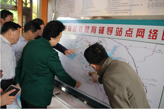 在天王、后白,考察组一行饶有兴趣地参观了两镇9个三种不同层次的校外教育辅导站、点,查看了相关的台账资料,同辅导员老师进行了情切的交谈,详细询问了未成年人在辅导站开展活动的情况,观看了后白中心小学关工委关爱留守儿童“乐学园”项目汇报的视频、观摩了“乐学园”活动现场。