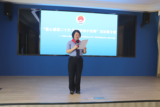 本次夏令营由句容市检察院主办,句容市经济开发区中心小学、句容市启航未成年人保护工作室协办。25名营员均系经济开发区中心小学一、二年级学生,本次活动还邀请了句容市政法关工委、句容市司法局相关部门负责同志参加,句容市检察院党组成员、副检察长徐光云作开营致辞,营员代表向与会领导敬献红领巾,互敬队礼。