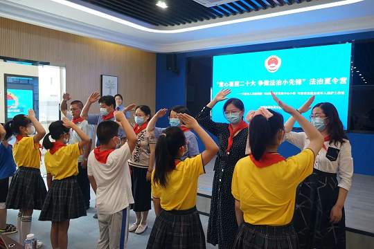 为迎接党的二十大胜利召开,弘扬法治精神,进一步增强青少年法治意识和自我保护能力,近日,句容市检察院组织20余名小学生在该院检察普法中心开展“童心喜迎二十大 争做法治小先锋”法治夏令营活动。