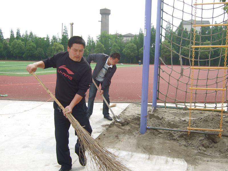 学校总务部门的核心价值观就是服务好全体师生。把师生利益放在首位,把师生的要求作为学校后勤工作的出发点和归宿。近日,郭庄中学总务后勤人员在总务主任负责人的带领下,积极投身于学校操场整理、校园环境维护、水电设施检修工作之中,每个人都能发扬“郭中精神”,奔波于施工现场,尽职尽责,做到有事必到,有事必成,当好郭庄中学的“管家”和“后勤兵”。