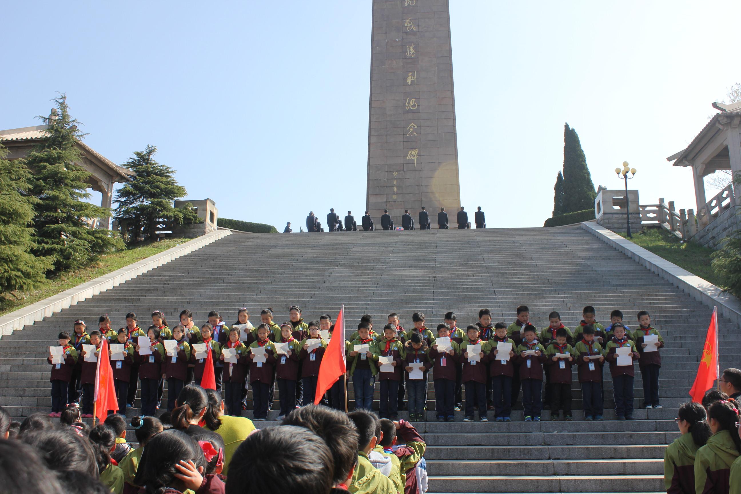 4月1日上午,茅山中心小学全体师生怀着对烈士无限崇敬的心情步行来到苏南抗战胜利纪念碑前举行了庄严的清明扫墓活动。