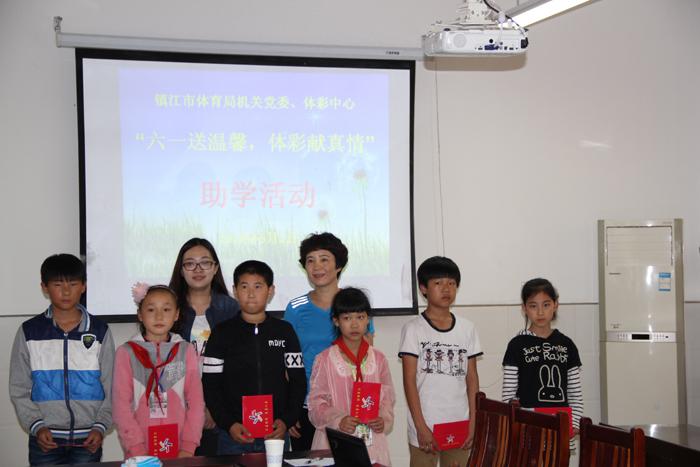 助学活动中,镇江市体彩中心的领导在了解了学生们的学习和生活情况后,勉励他们要好好学习,学好知识,做有理想阳光的孩子,并为他们每人捐助了500元助学金,祝他们过一个幸福快乐的儿童节。